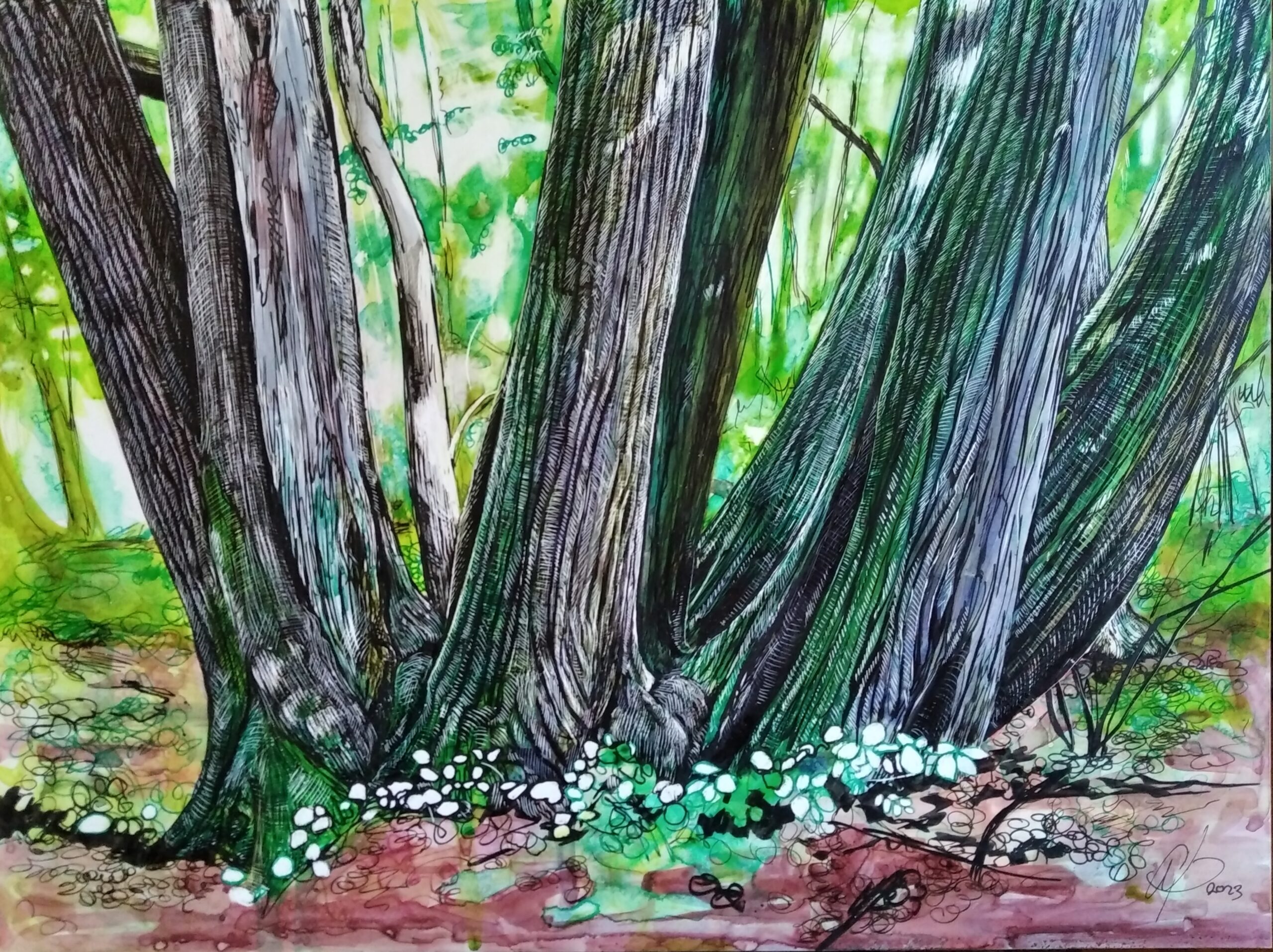 Morgaston Wood is part of The Vyne estate, a National Trust property near Basingstoke, in Hampshire. It is open to the public and seems to get a lot of dog walkers. The wood itself seems to consist largely of sweet chestnut trees, a handsome, non-native relative of oak and beech. Many of the examples in Morgaston wood are coppices, like the one seen here, although it doesn’t seem as if the National Trust are harvesting the timber (or the abundant nuts, which are delicious).